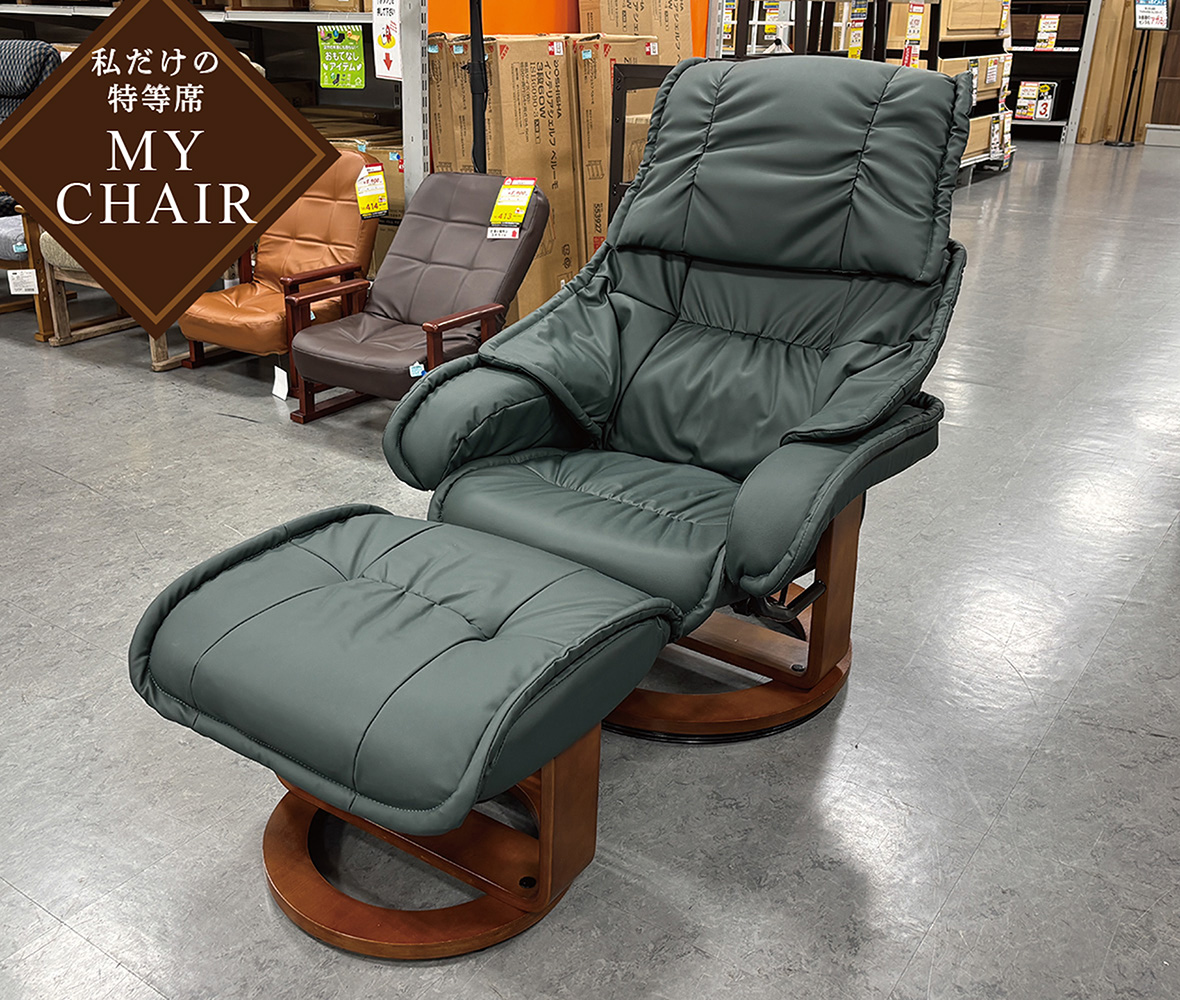 ワンタッチでリクライニング!オットマン付きパーソナルチェア。合皮素材でお手入れ簡...