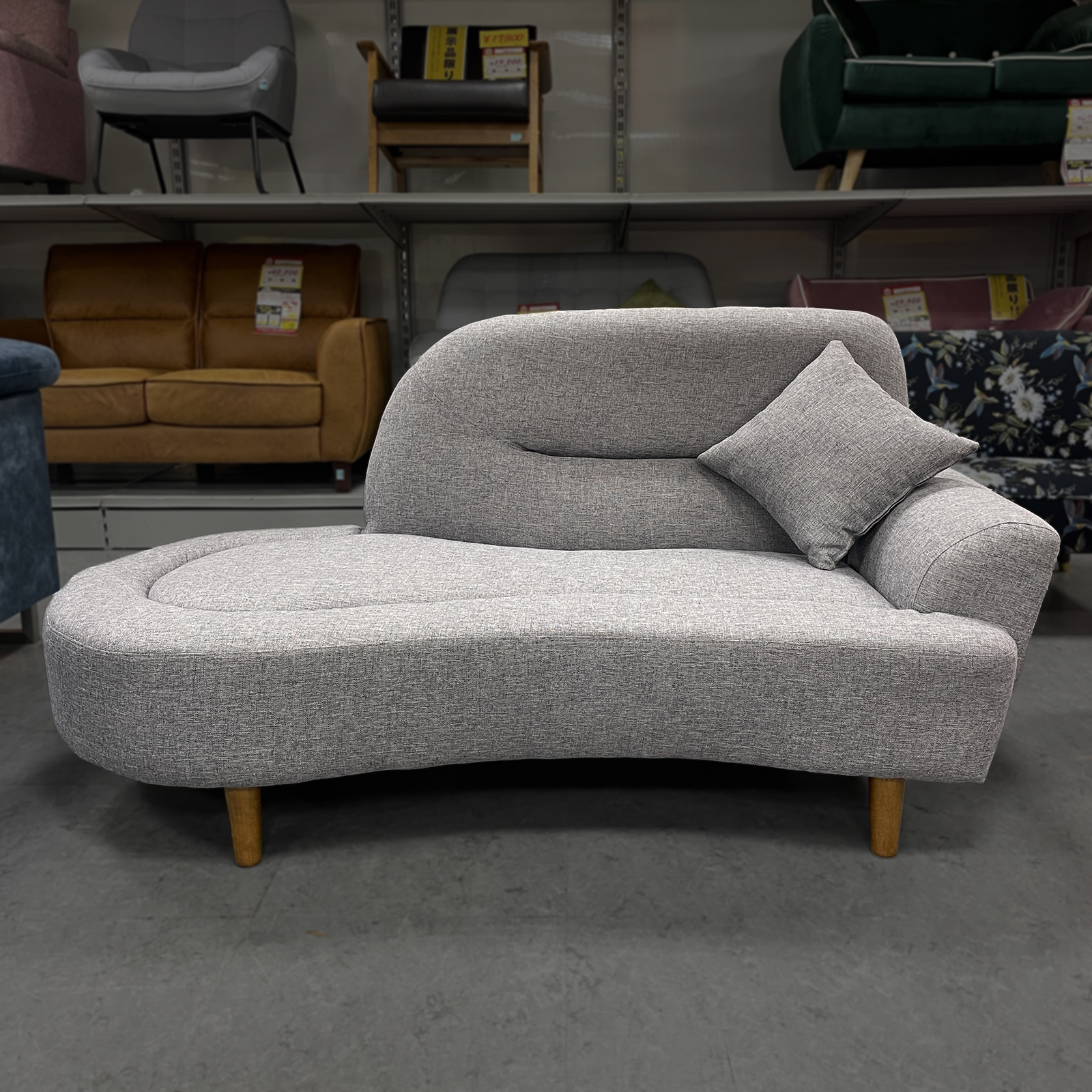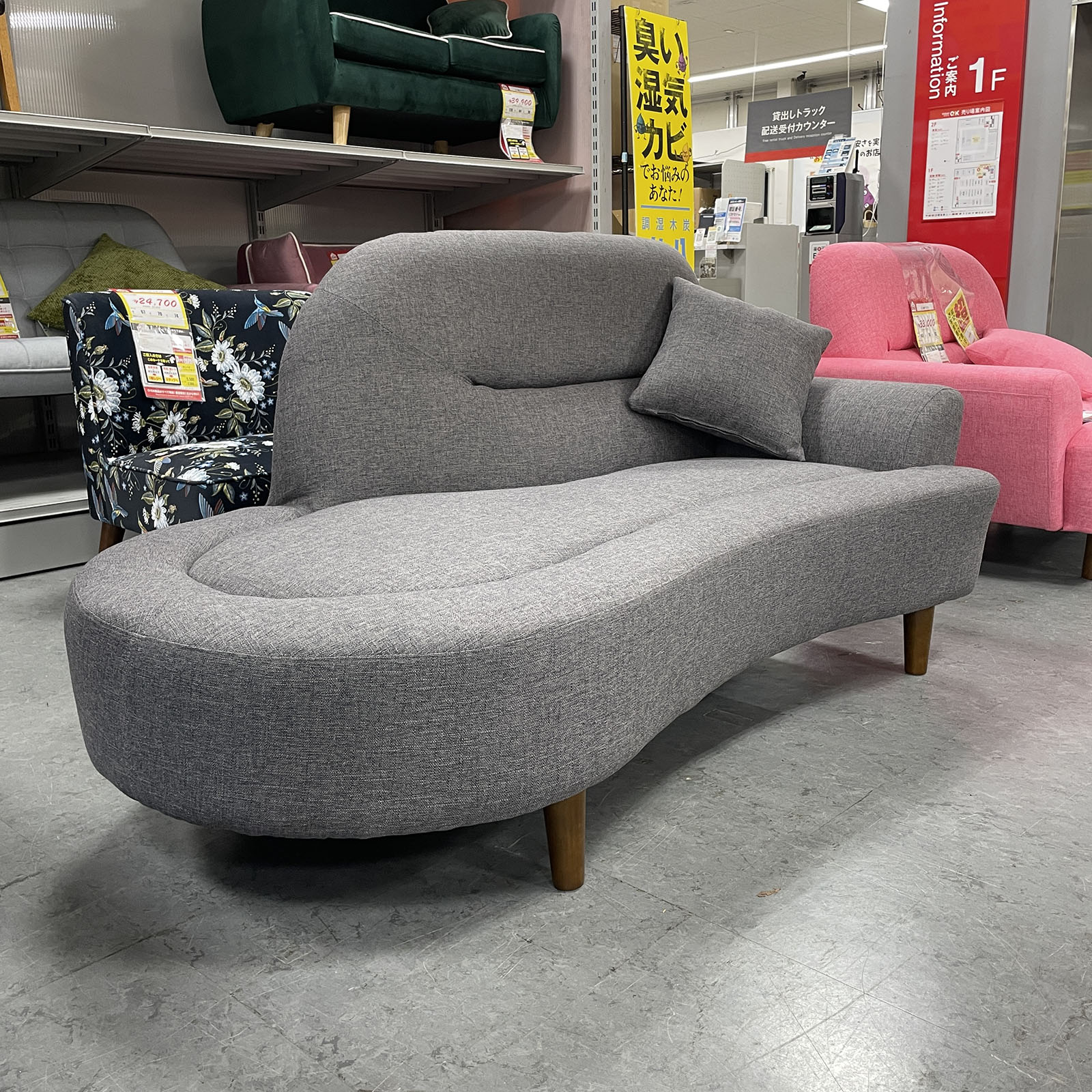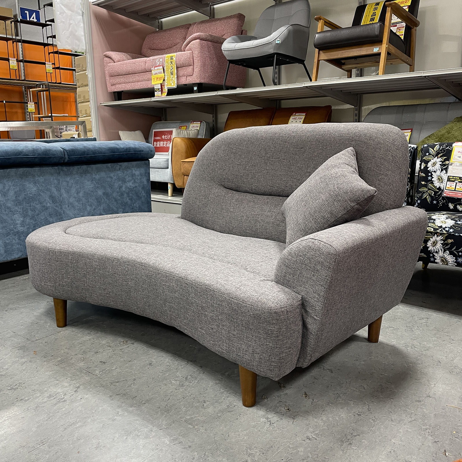 コンパクトで使いやすい片肘タイプのソファ!曲線のあるフォルムがお部屋にやわらかな印象をプラスします☆自由度の高い座り方ができてくつろぎやすさも◎