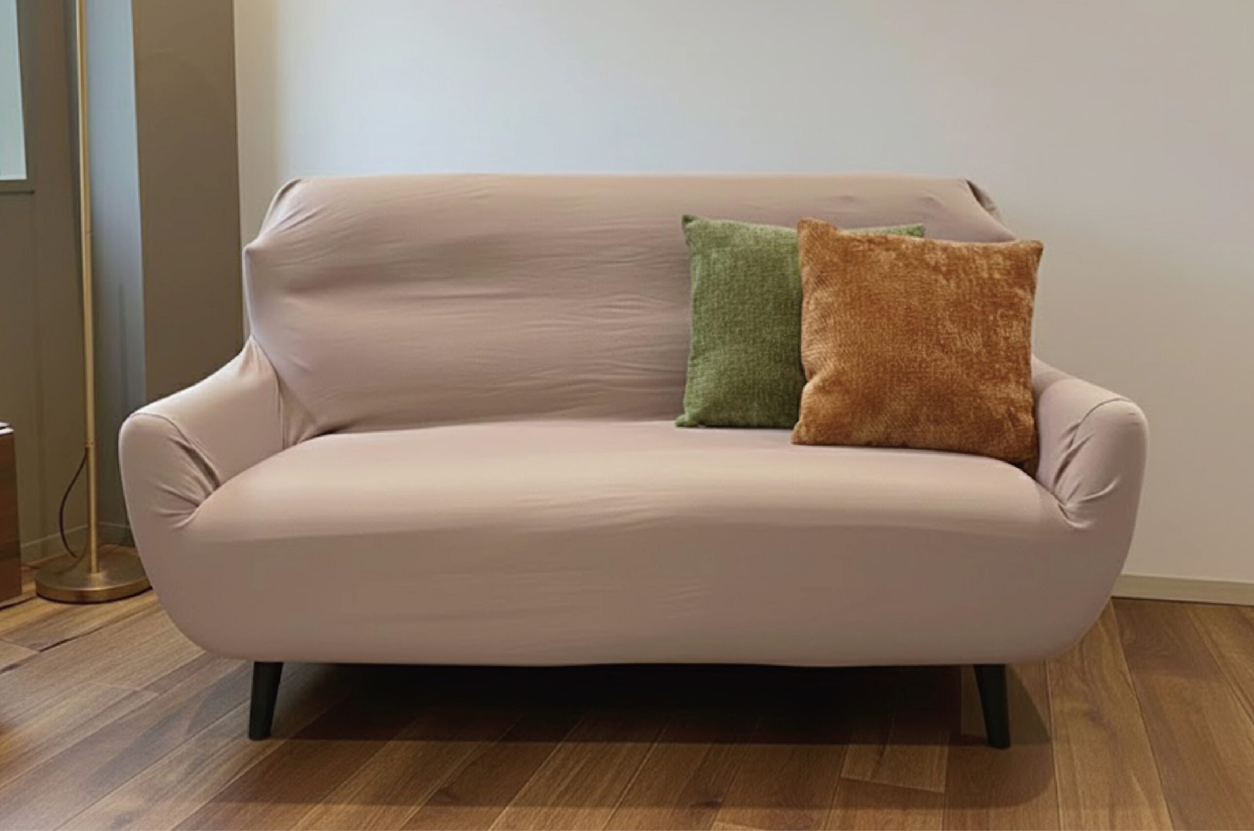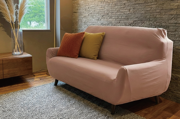 伸びる生地でソファにぴったりフィット。ズレ防止。固定棒付き。あたたかさを感じる肌触りで冬も快適。洗えて清潔、選べる安心の3サイズ展開。