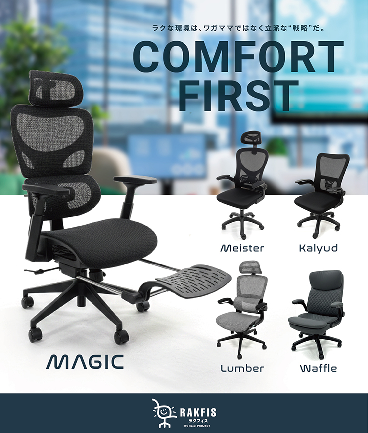 必要最低限の機能だけを厳選し、低価格を実現したオフィスチェアが新登場。自社開発により中間マージンをカットし、さらに生産工場へ直接出向き品質チェックを行う管理体制を整えた生産現場とだけ契約。シンプルながら、安心と満足をお約束できる座り心地をご体感ください。
